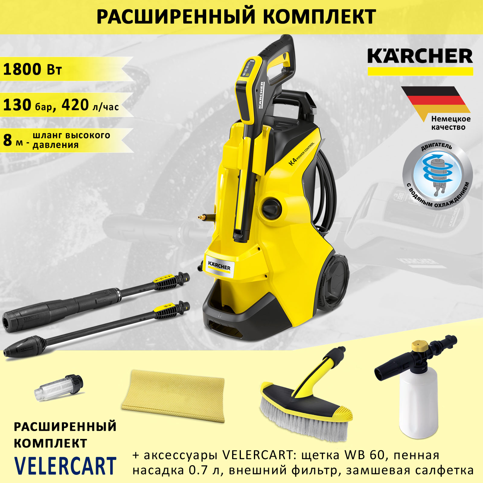 Мойка высокого давления Karcher K 4 Power Control + щетка WB 60, пенная насадка 0.7 л, замшевая салфетка и фильтр