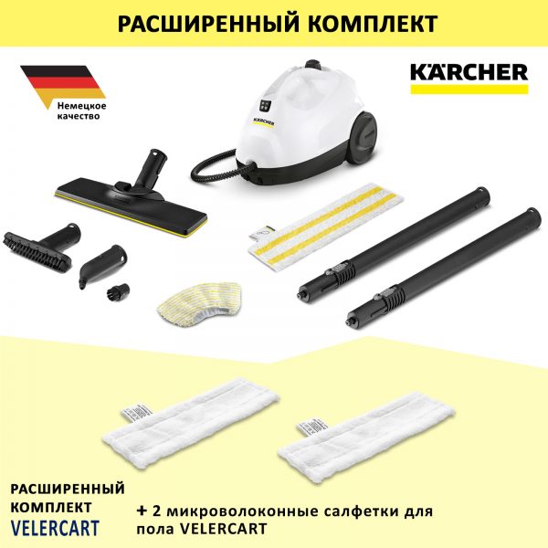 Пароочиститель для дома Karcher SC 2 EasyFix, белый + 2 салфетки для пола VELERCART