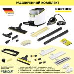 Пароочиститель для дома Karcher SC 3 Deluxe EasyFix, белый + аксессуары VELERCART: 2 салфетки для пола, 2 обтяжки для ручной насадки, 4 щёточки, насадка для мытья окон
