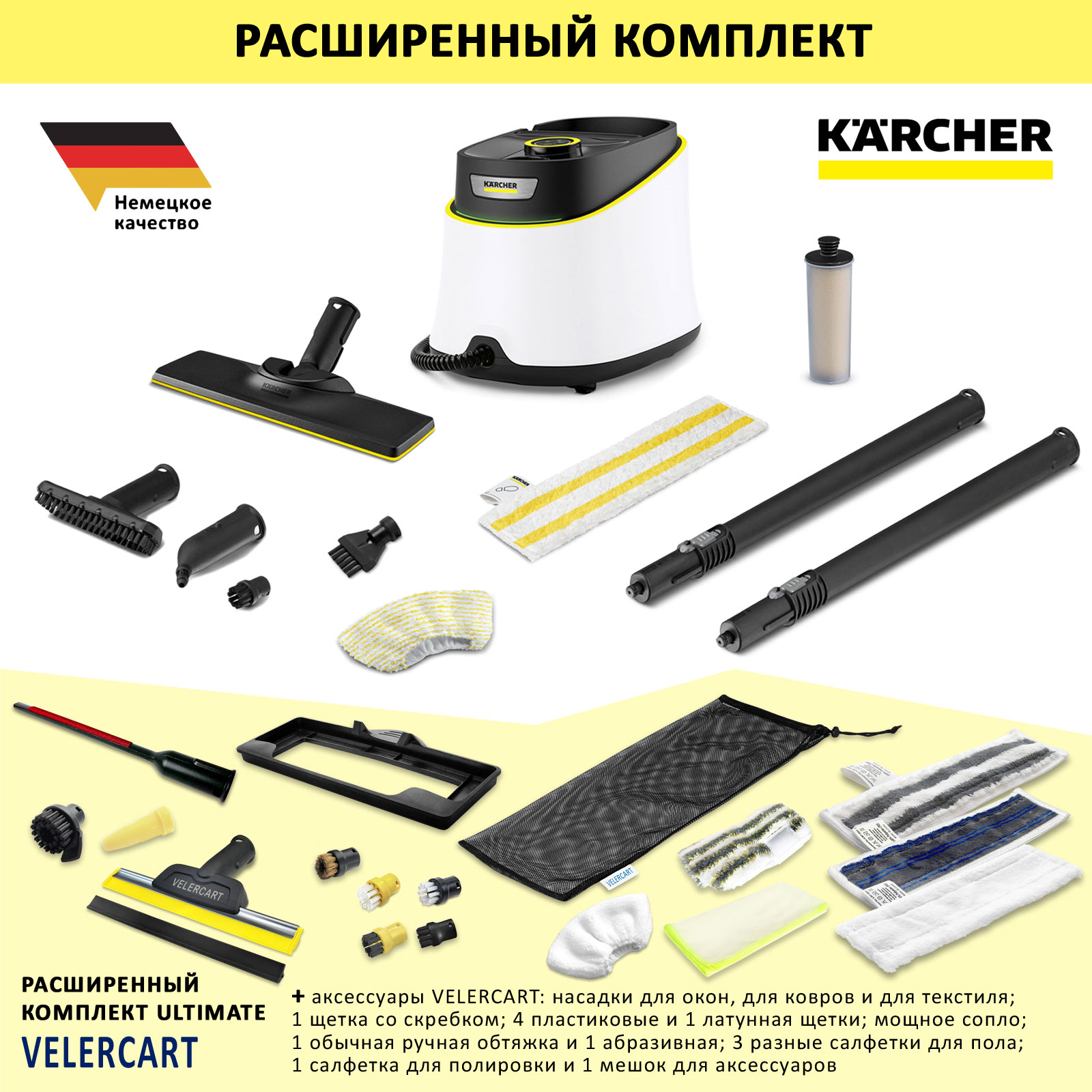 Пароочиститель для дома Karcher SC 3 Deluxe EasyFix, белый + аксессуары VELERCART в комплектации Ultimate