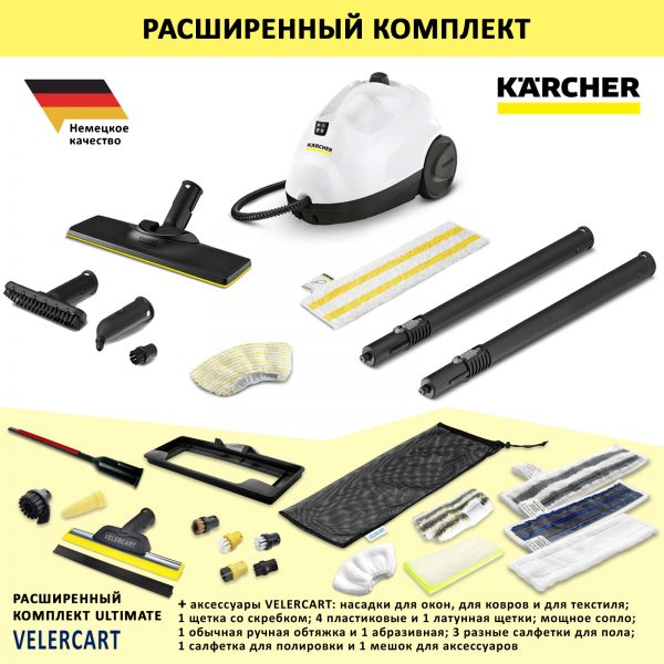 Пароочиститель для дома (паровая швабра) Karcher SC 2 EasyFix, белый + аксессуары VELERCART, комплект Ultimate
