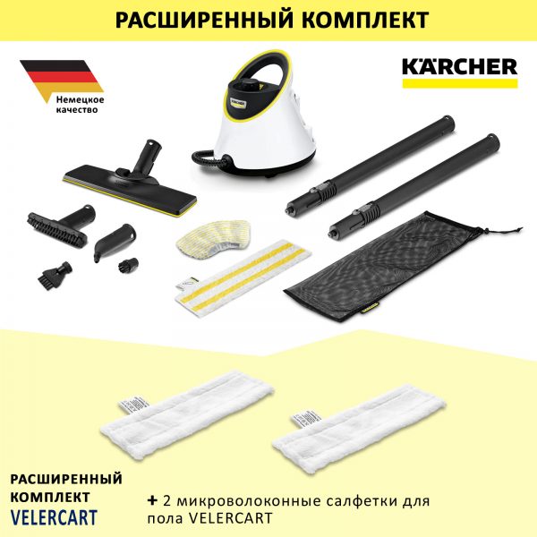 Пароочиститель для уборки дома Karcher SC 2 Deluxe EasyFix, белый + 2 салфетки для пола VELERCART