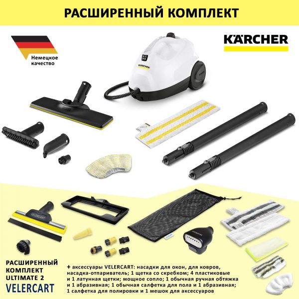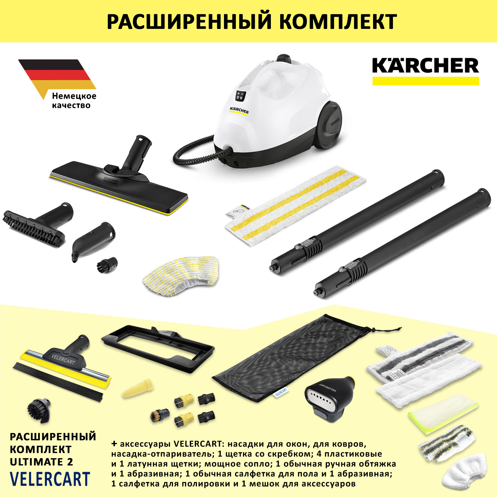 Пароочиститель Karcher SC 2 EasyFix + аксессуары VELERCART, комплект Ultimate 2 (с насадкой-отпаривателем)