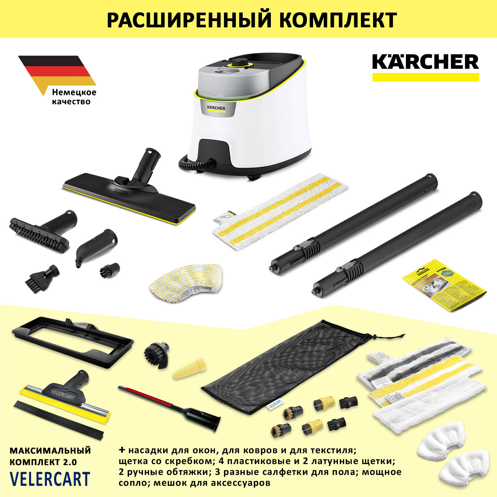Пароочиститель Karcher SC 4 Deluxe EasyFix, белый + аксессуары VELERCART в комплектации MAX2