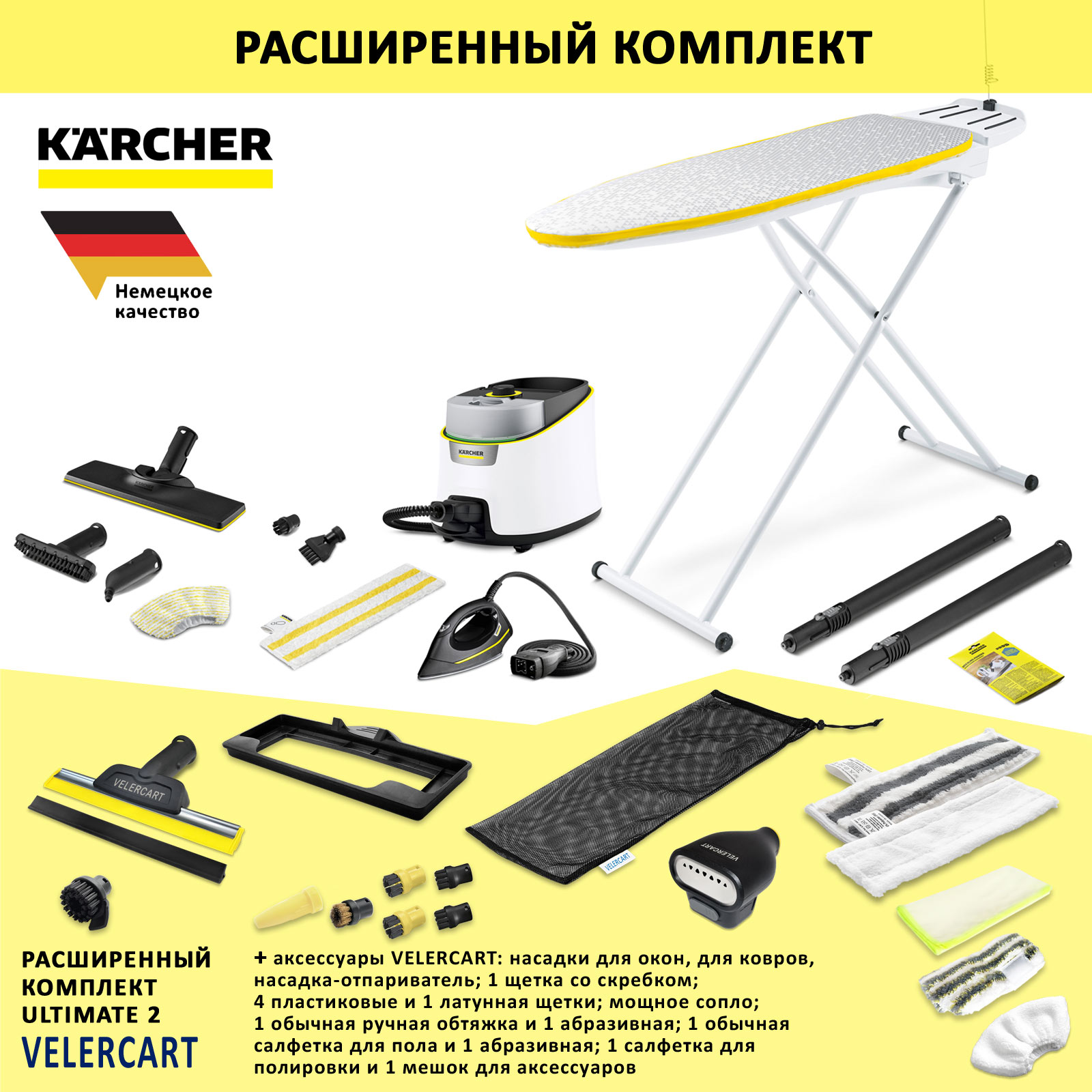 Паровая гладильная система: пароочиститель Karcher SC 4 Deluxe Iron с утюгом + активная гладильная доска, аксессуары VELERCART в комплектации Ultimate 2