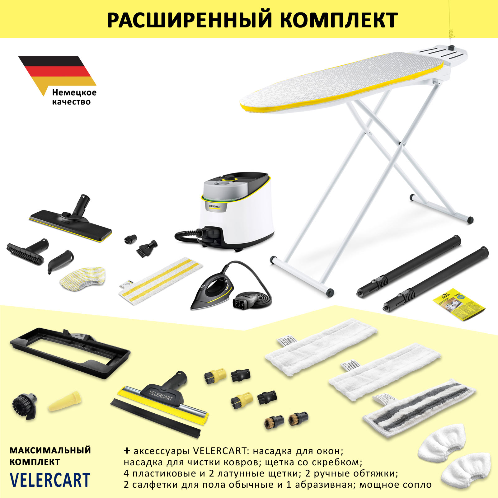 Паровая гладильная система: пароочиститель Karcher SC 4 Deluxe Iron с утюгом + активная гладильная доска и аксессуары VELERCART в комплектации MAX