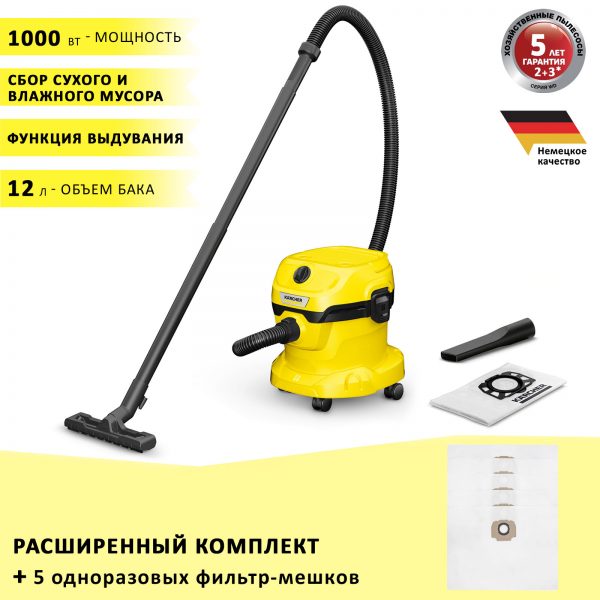 Пылесос Karcher WD 2 Plus V-12/4/18 + 5 фильтр-мешков