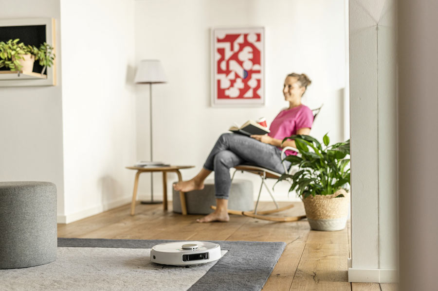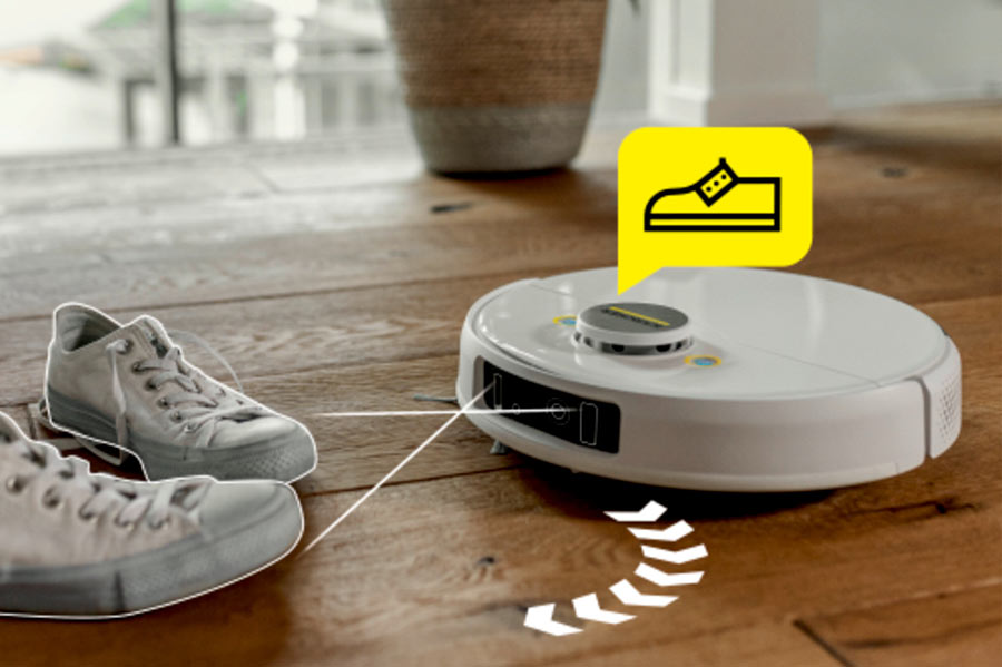 Благодаря дуальной лазерной системе с камерой Karcher RCV 5 распознает даже такие низкие препятствия, как кабели, носки или обувь, и объезжает их.