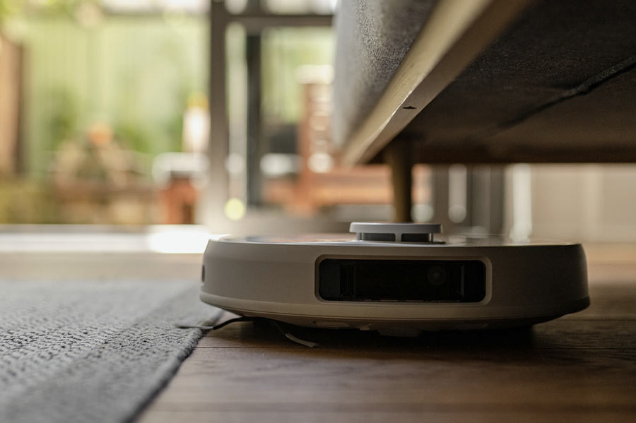 - 3D-датчик с камерой - для обнаружения мелких препятствий на пути. Пылесос плавно притормаживает перед объектом и объезжает его;